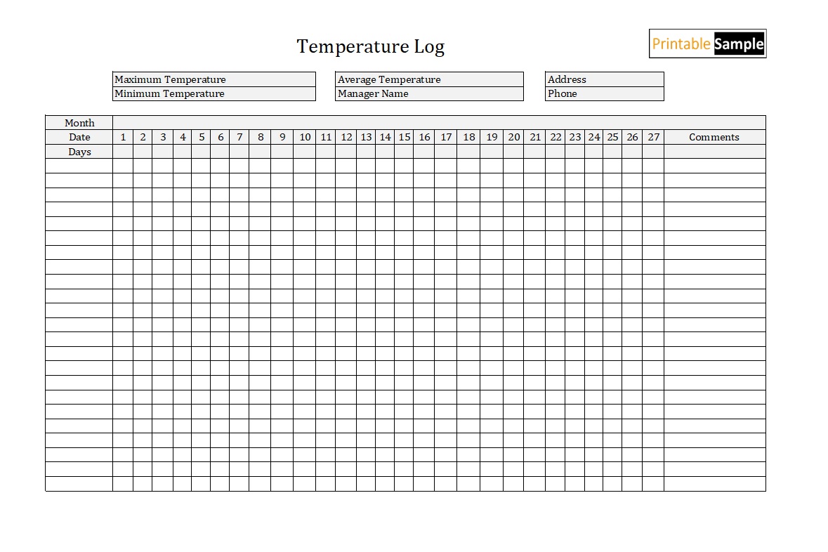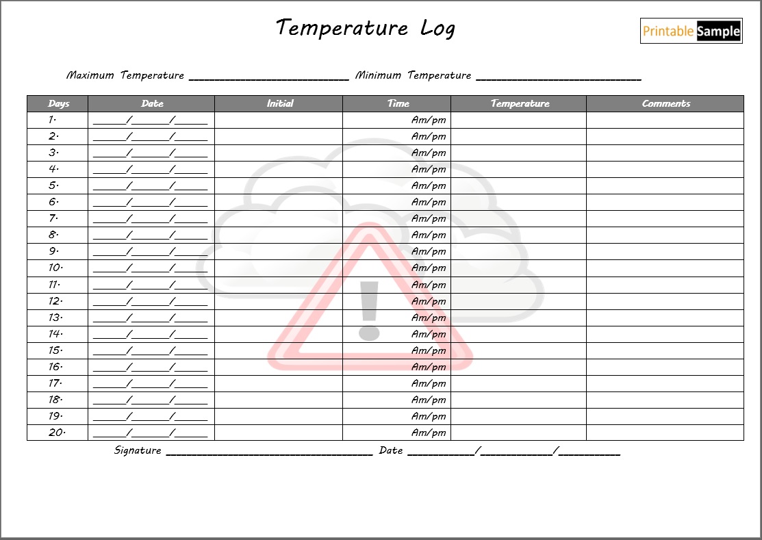 temperature log template 03 - Printable Samples