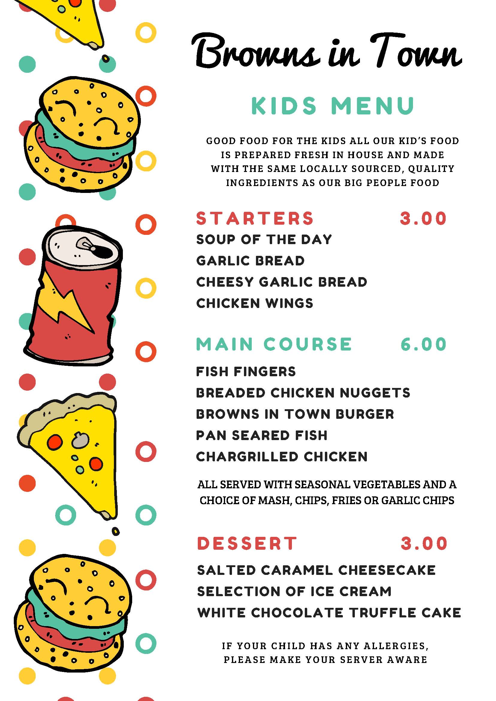 Kids Menu - The Brown Bottle in Downtown Waterloo